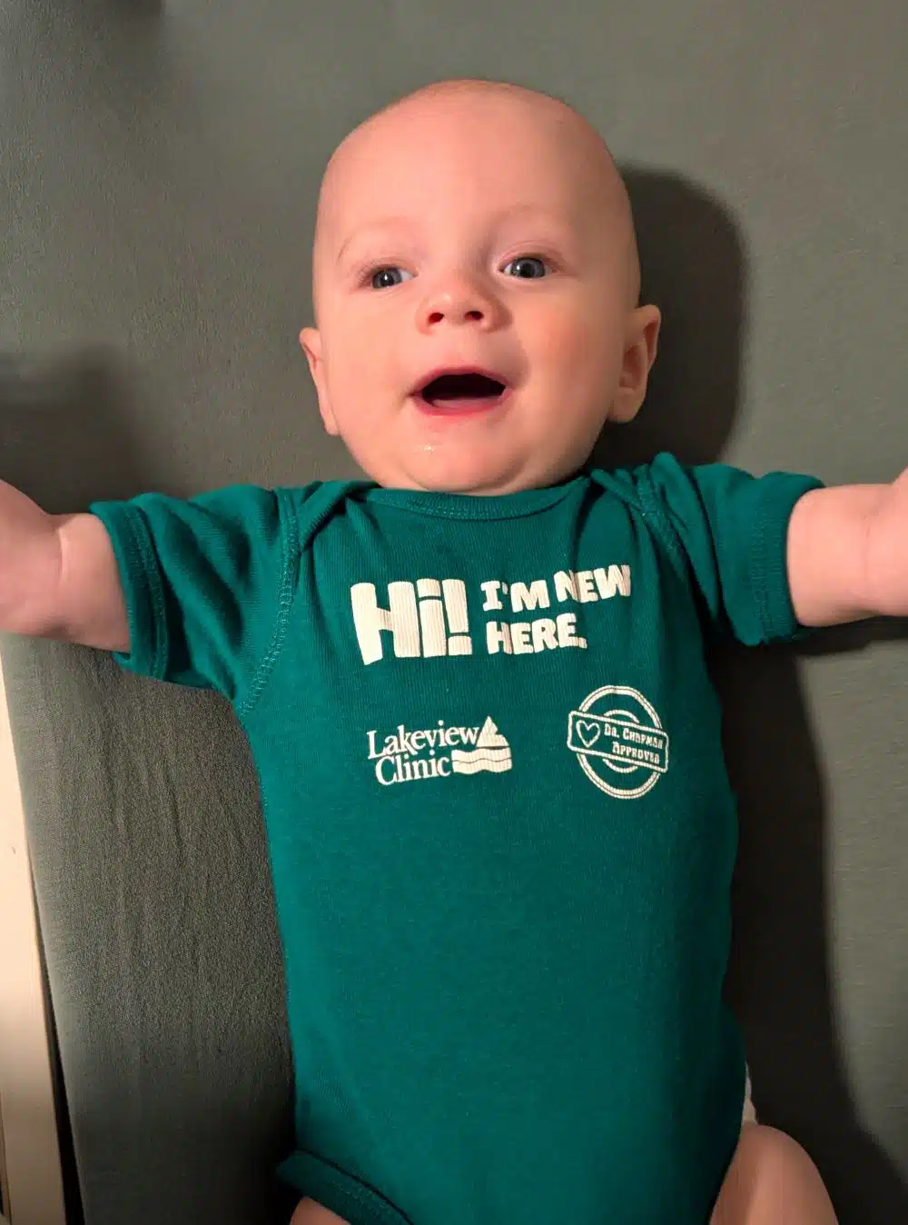 View photos of new babies wearing their “I’m New Here” onesies. These little ones were all delivered by Lakeview Obstetricians. Parents who want to share a picture of their little one wearing their new onesie can use the submit photo button below.